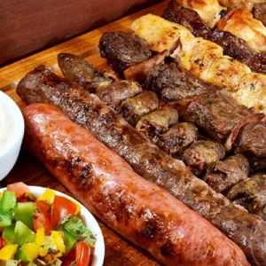 Para 2 pessoasAproximadamente 600gr. Carne Bobina Frango, Porco, Linguiça e Pão de Alho. Acompanha 5 Guarnições a sua escolha Para 4 pessoas Aproximadamente 1 kg .