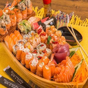 20 Hots Philadélfia, 10 Trouxinhas de Salmão, 10 Sashimis de Salmão, 10 Philadélfia, 10 Philadélfia invertidos,
