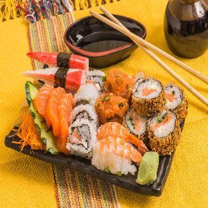 10 Hots Philadélfia, 10 Trouxinhas de Salmão, 10 Sashimis de Salmão, 5 Philadélfia, 5 Philadélfia invertidos,